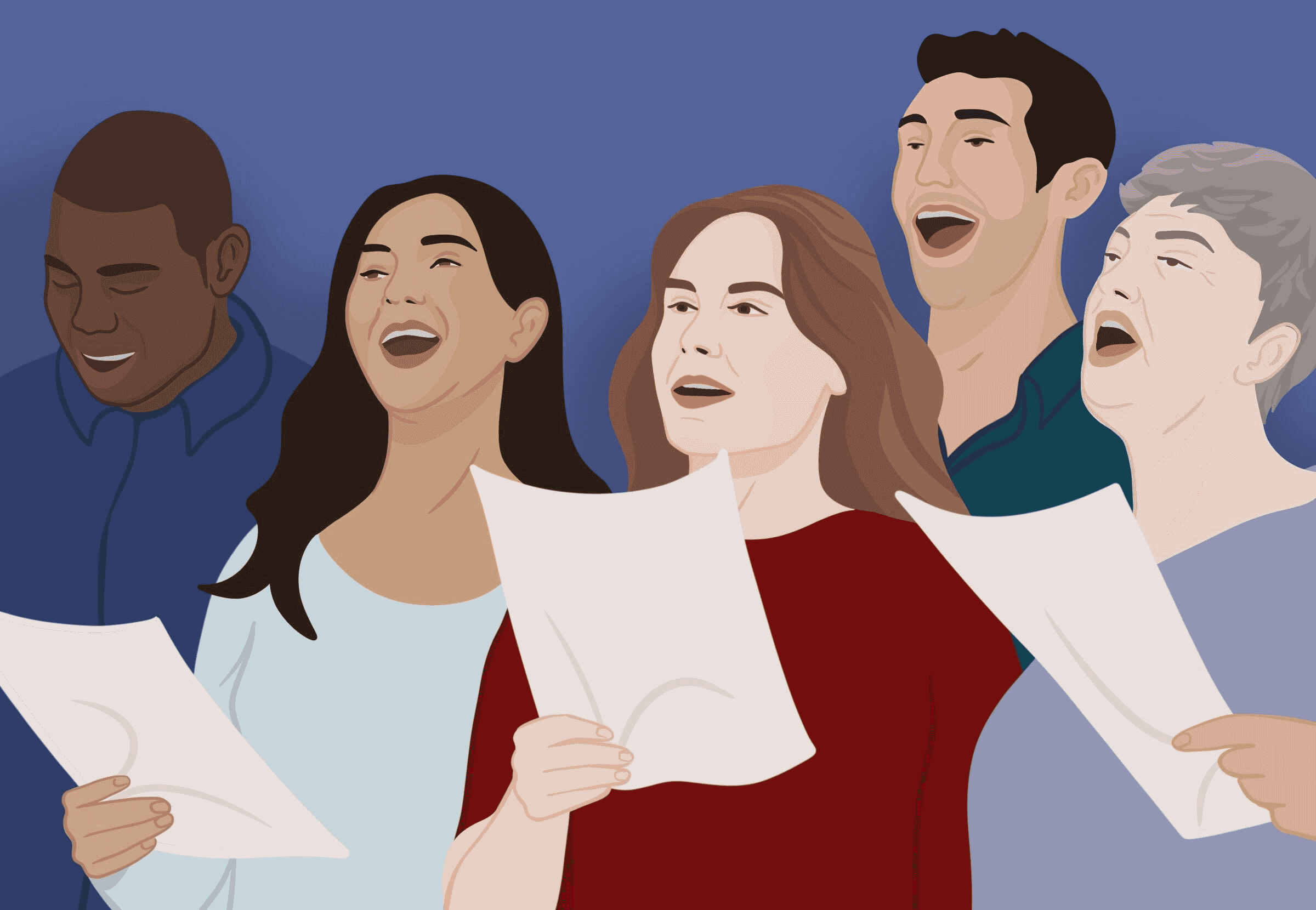 The group sung these songs for twenty minutes a day for three months. The singing they did wasn’t your typical tune you might hum to yourself, but focused more on projecting strong vowel sounds with big exaggerated mouth movements.